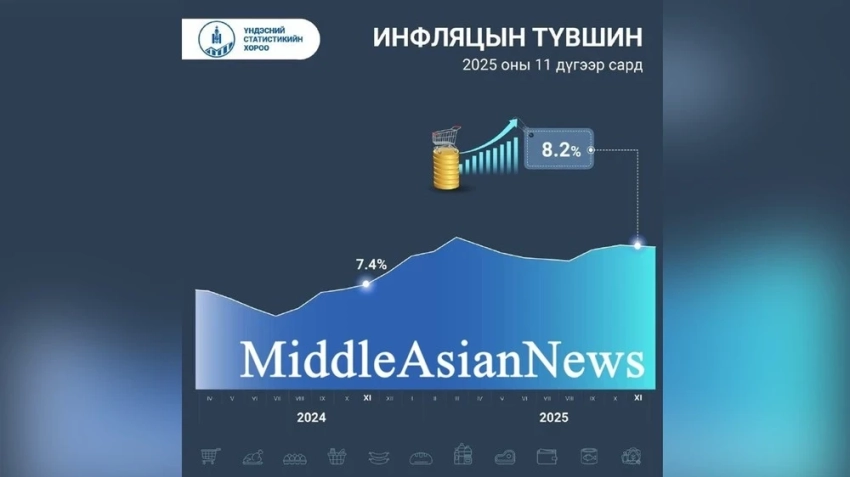 В годовом исчислении, по данным НСУ, инфляция в Монголии в ноябре 2025 года составила 8.2%, снизившись с 9.2% в октябре. Основное влияние на замедление оказали цены на жилье и коммунальные услуги, а также услуги ресторанов и здравоохранения. Однако при этом стоимость продуктов питания и транспортных услуг продолжала расти; ежемесячный рост потребительских цен составил 0.6%.