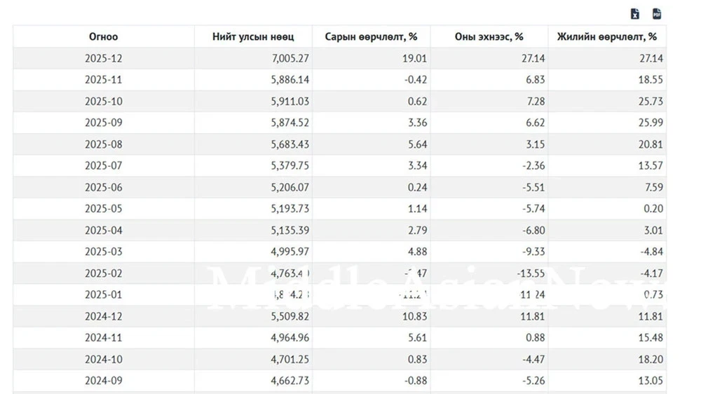 По последним данным, предоставленным центральным банком Монголии, к концу 2025 года валютные резервы страны достигнут значительного показателя в $7 миллиардов (точно $7 005 270 000).