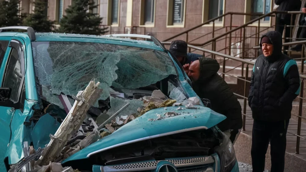 Местные жители осматривают автомобиль после удара дрона в Одессе. Фото: Reuters / Nina Liashonok. - Обстрелы привели к повреждениям энергетической инфраструктуры, в результате чего более 30 тысяч семей в Одесской области остались без электроэнергии.
