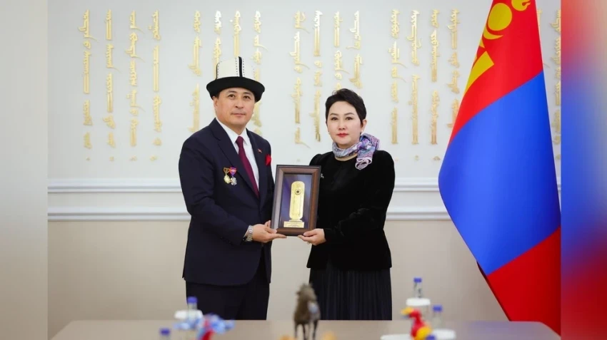 Министр вручила Айбеку Артыкбаеву награду «Алтан Гэрэгэ», что является знаком признания его заслуг в области дипломатии, и пожелала ему успехов в будущих начинаниях.