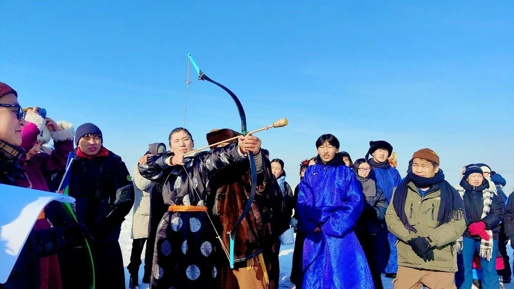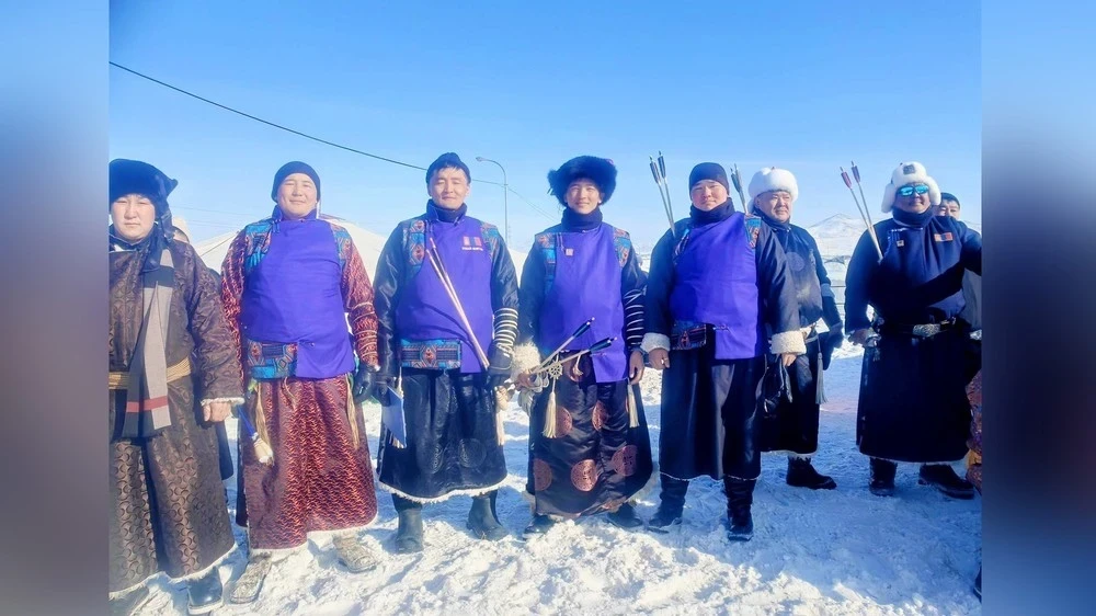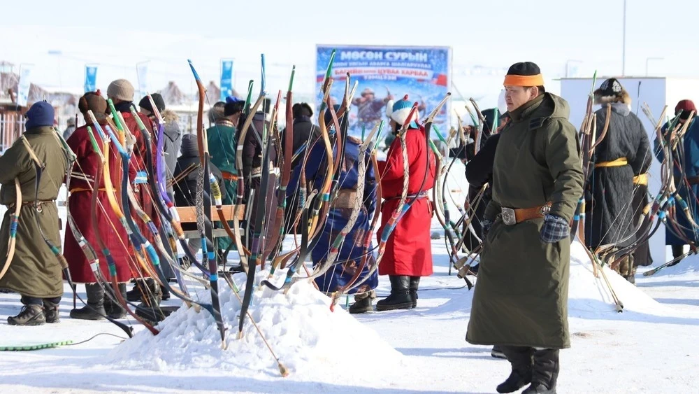 Международный чемпионат по стрельбе из лука на льду, представляющий традиционный монгольский вид спорта