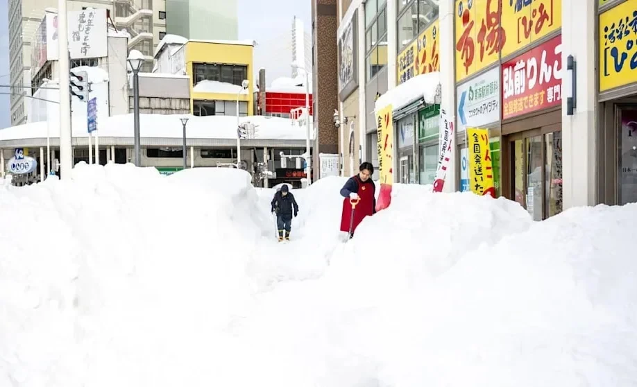С начала января северные области Японии столкнулись с беспрецедентными снегопадами, которые продолжаются до сих пор. В частности, в городах Аомори и Аджигасава высота снежного покрова этой зимой превысила один метр, а в некоторых местах образовались сугробы высотой до 4,5 метра.