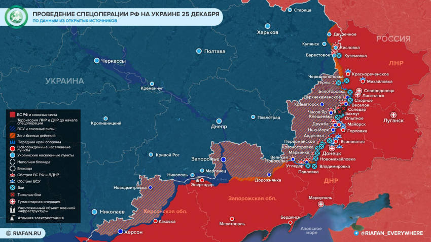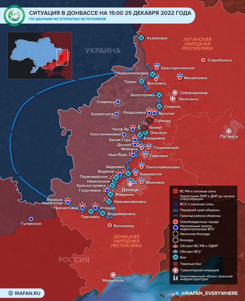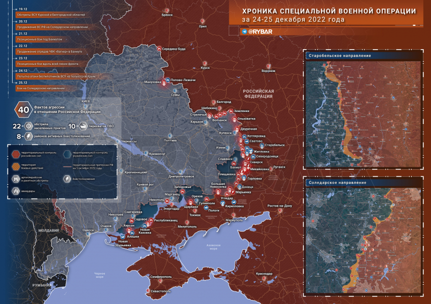 Хроника специальной военной операции за 24-25 декабря 2022 года от аналитического Телеграм-канала «Рыбарь»