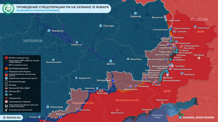 Обновленная карта военной операции на Украине на 16 января 2023 года: приближается главный «зимний удар» ВС РФ