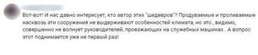 «С какой целью устанавливают такие остановки? Единственная их защита – попадание крупного мусора, но неужели он представляет такую угрозу, что подобные остановки раскиданы по всему городу? Ветер, снег, дождь. В зависимости от погоды испытываешь весь спектр эмоций в ожидании автобуса», — задался вопросом автор поста.