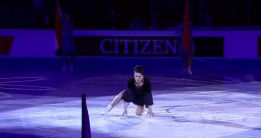 Достижения талантливых спортсменов затмил один участник. После того, как на лед выехали девушки с флагами стран-участниц, на арене появилось нечто, похожее на стереотипную возрастную учительницу из старых анекдотов про Вовочку. Проехав некоторое расстояние по льду, эта «дама» упала на лед, после чего уже не смогла встать на коньки без посторонней помощи.