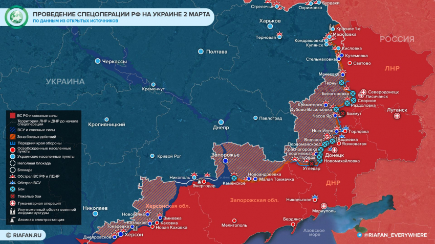 Обновленная новая карта боевых действий на Украине по данным на утро 3 марта — Минобороны обновило новую карту боевых действий 03.03.2023