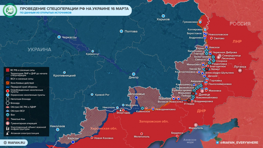 Обновленная новая карта боевых действий на Украине по данным на утро 16 марта — Минобороны обновило новую карту боевых действий 16.03.2023