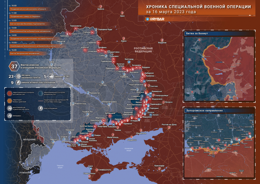 Хроника специальной военной операции за 16 марта 2023 года от Телеграм-канала «Рыбарь»