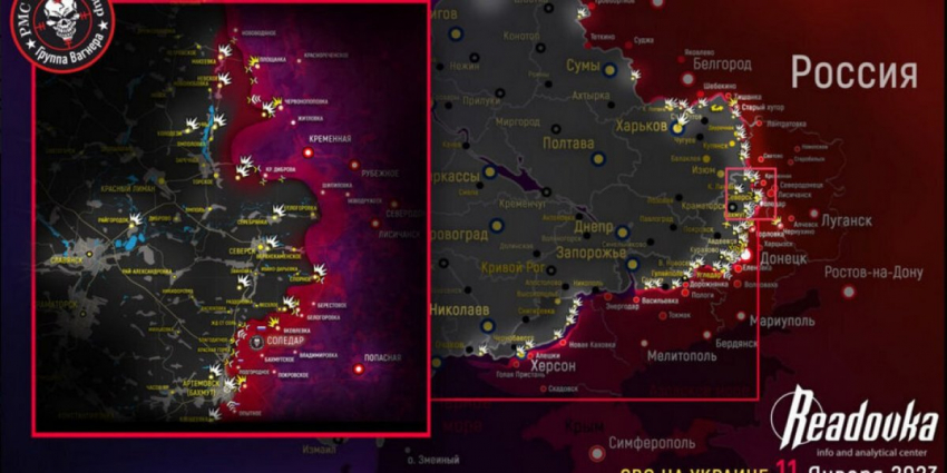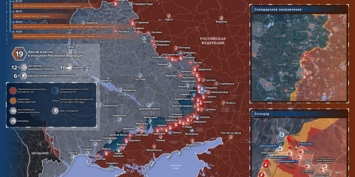 - Свежая карта боевых действий на Украине сегодня, 13 января 2023. Последние новости о ходе военной операции на 13 января 2023 года. Соледарское направление