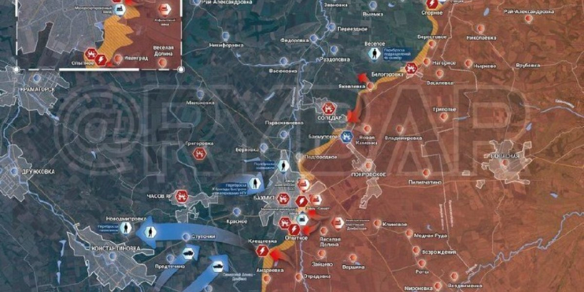 ▪️Армия России продолжает наступление в районе н.п. Масютовки, Дибровой, Белогоровки в ЛНР; Верхнекаменского, Веселого, Спорного, Яковлевки, Артемовска, Бахмутского, Яковлевки, Соледара, Песок, Водяного, Невельского, Марьинки, Новомихайловки, Пречистовки, Подгородного, Клещеевки, Андреевки, Александра-Шульта, Курдюмовки, Дылеевки, Озаряновки, Дружбы, Северного, Железное и Нью-Йорка ДНР.