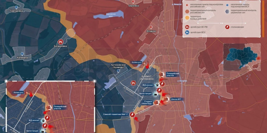 Основные события битвы за Бахмут развиваются в центре города у ж/д ветки. Значение позиций у вокзала достаточно велико, так как освобождение этого квартала значительно облегчит штурм западной окраины Бахмута и заставит ВСУ отводить войска за улицы Чайковского и Леваневского для сохранения жизней личного состава.