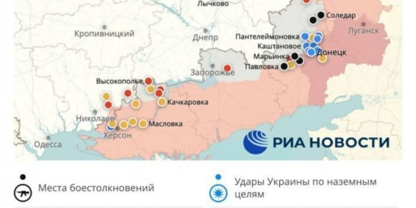 - На других участках изменений линии фронта нет. Под Пречистовкой и Новомихайловкой идут перестрелки и обмен артиллерийскими ударами, активных наступательных действий ВС РФ не предпринимают.