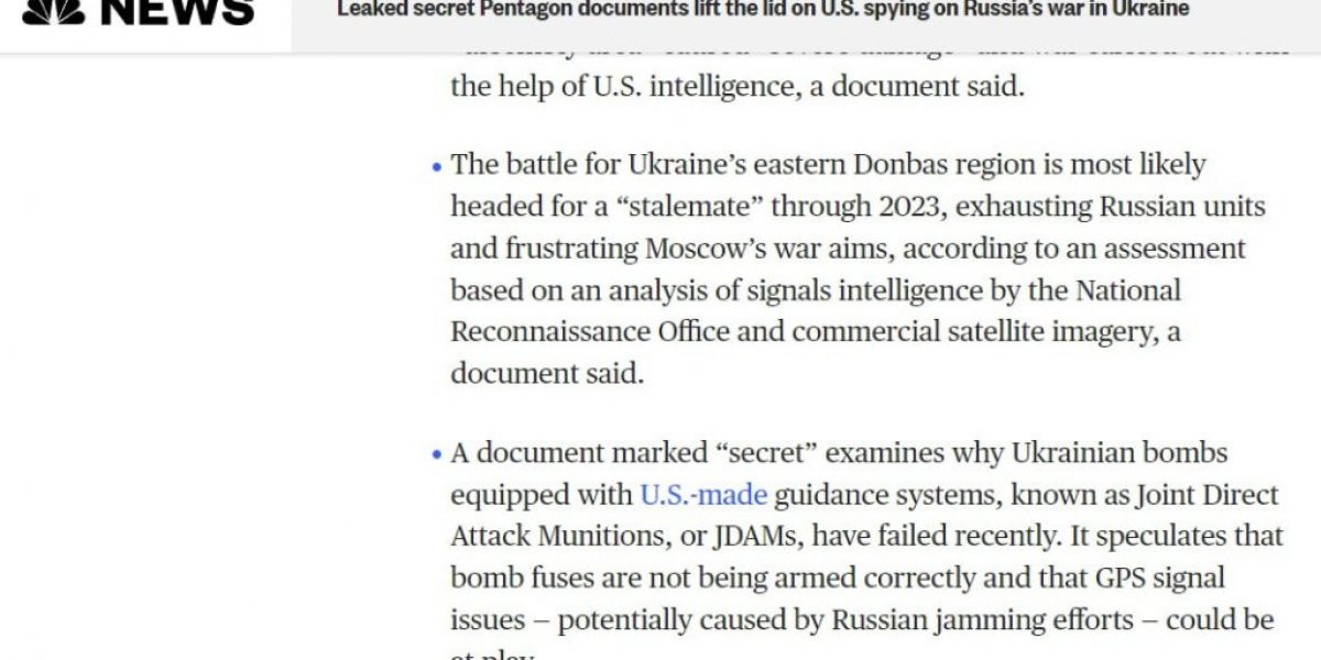 Речь, видимо, идет о слитых документах США, из-за которых поменялись (https://t.me/OstashkoNews/64557) «военные планы» киевского режима.