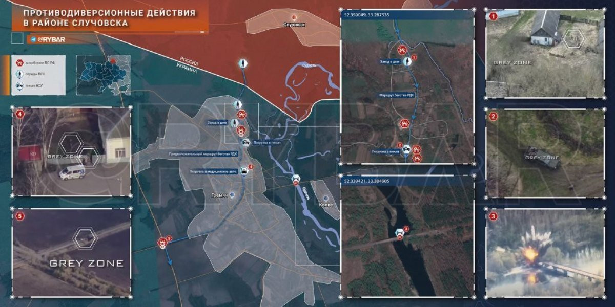 Во время отходам члены «РДК» подошли к селу Гремяч Черниговской области в ожидании эвакуации, после чего по ним начали работать артиллерия и коптеры с системой сброса гранат. Диверсанты отступали пешком между стариц реки Судость и укрылись в частном доме на северной окраине населенного пункта.