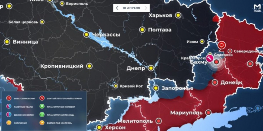 Карта боевых действий на Украине сегодня 11.04.2023 в реальном времени на сейчас