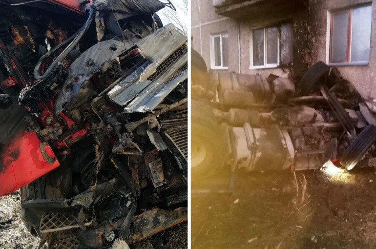 Грузовик Scania в четвёртом часу ночи в четверг, 13 апреля, влетел в дом № 2 на улице 40 лет Победы и загорелся. Один из местных жителей снял это на видео.