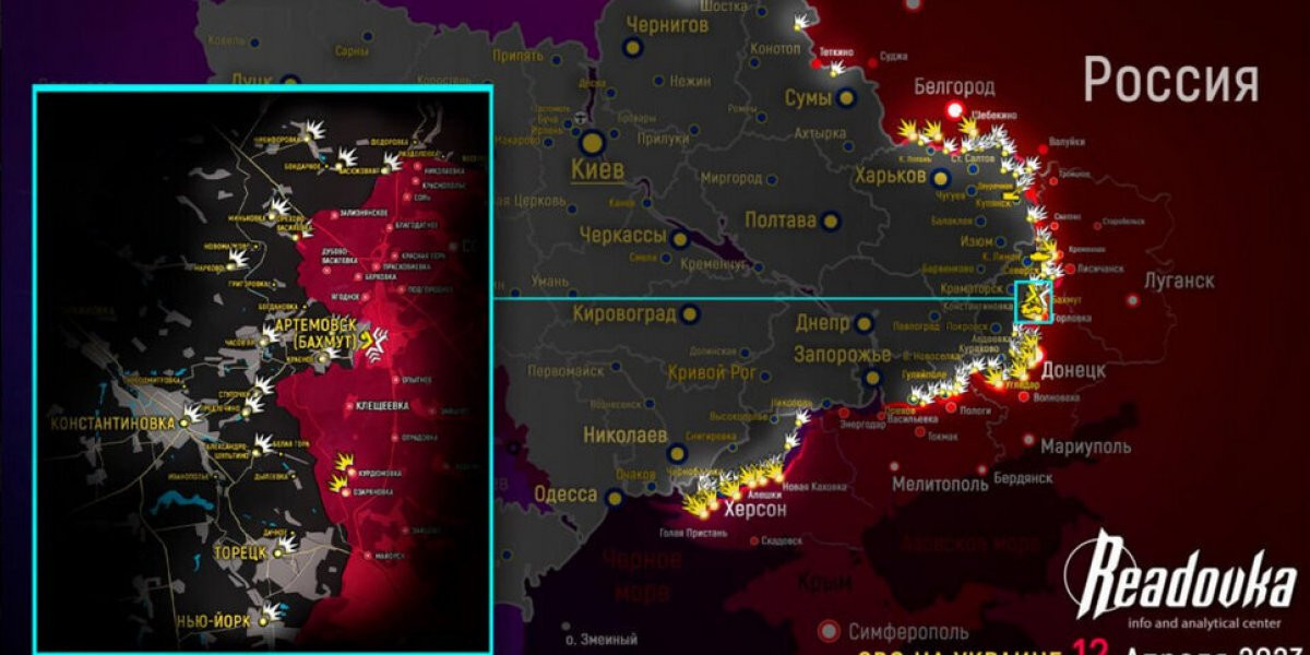 Новая, обновленная карта боевых действий на Украине 14 апреля 2023 года. Актуальные данные на сегодняшний день