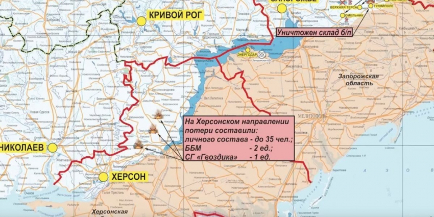 - Потери противника составили более 35-ти украинских военнослужащих, два автомобиля, а также самоходная гаубица «Гвоздика».