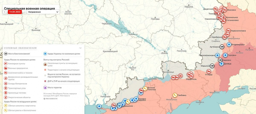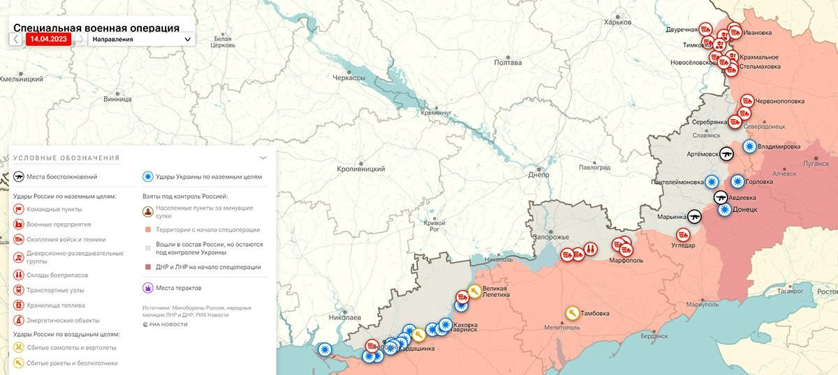 Карта боевых действий на Украине 15.04.2023: данные на сегодняшний о ситуации в зоне СВО