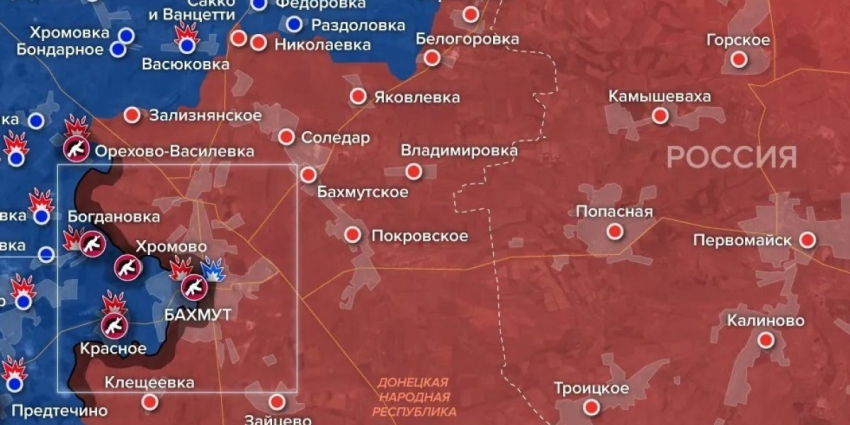 Подробная карта боевых действий на Украине с областями и городами (сёлами и пгт) Донбасса (ЛНР и ДНР): наступление ВС РФ на сегодня, 16 апреля 2023
