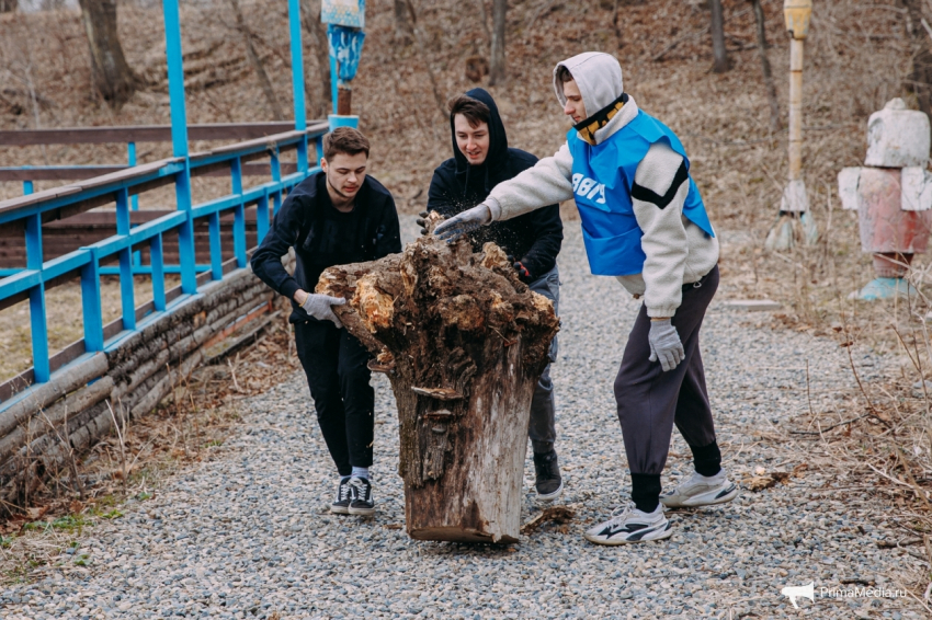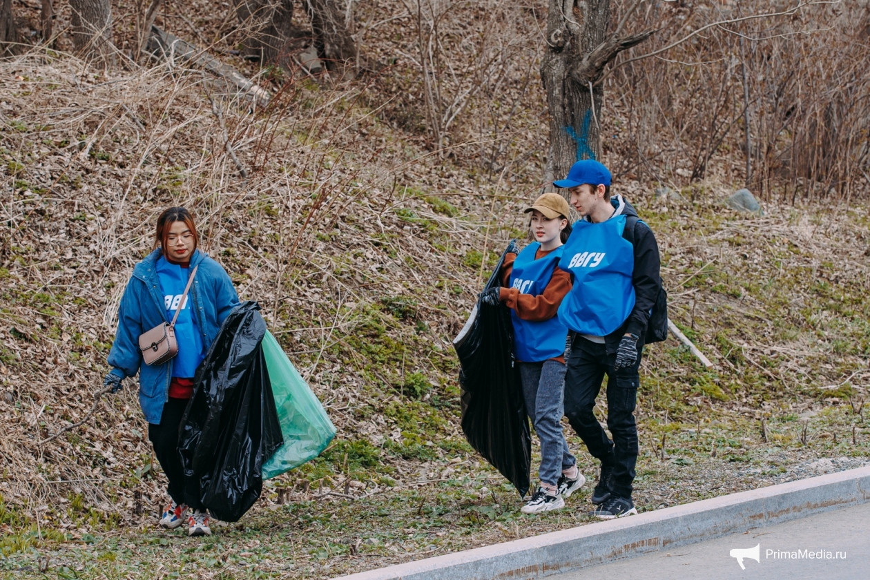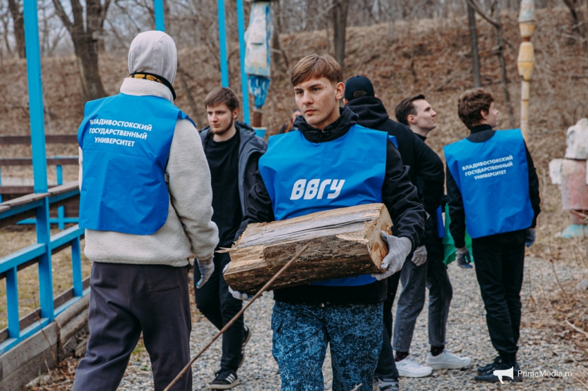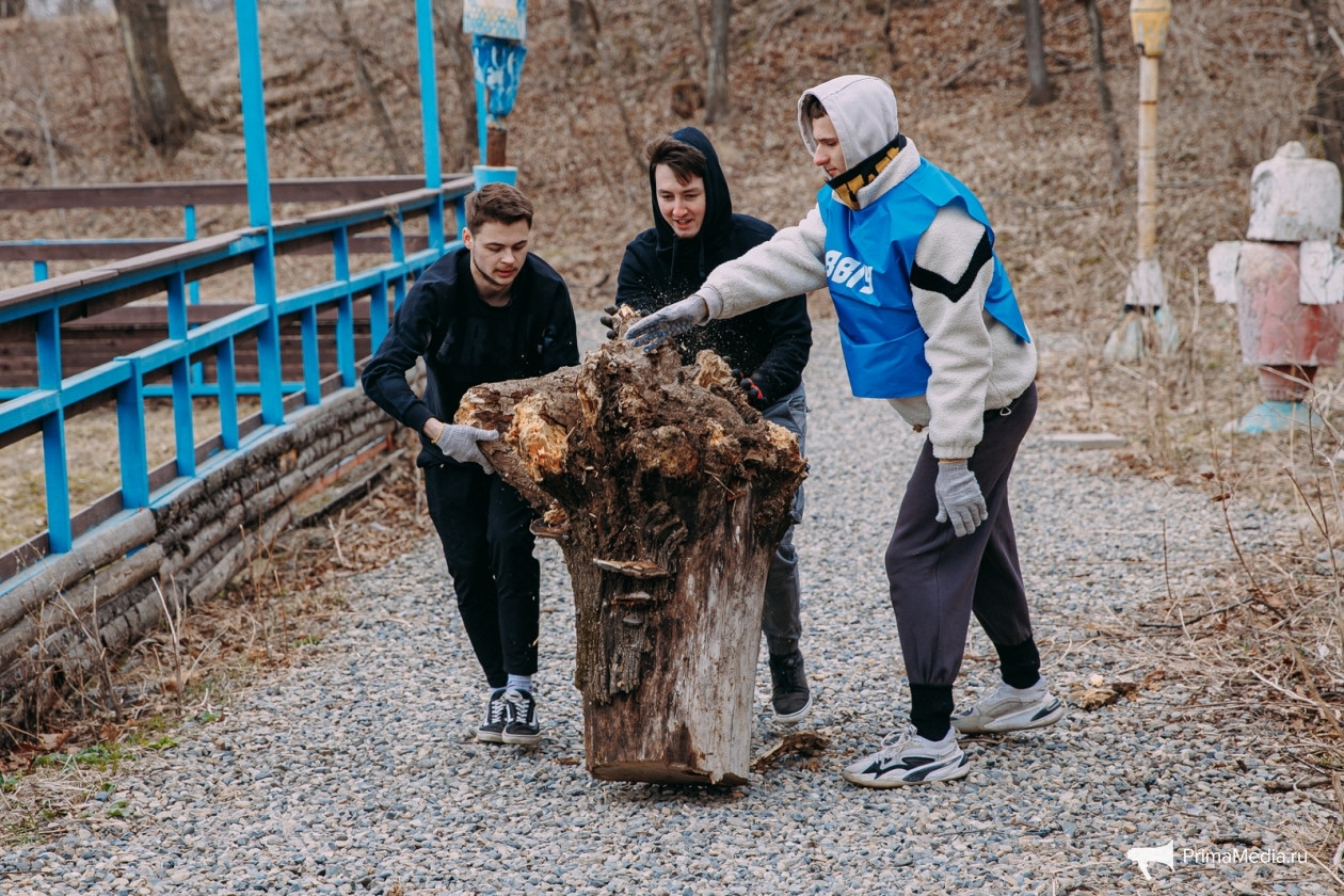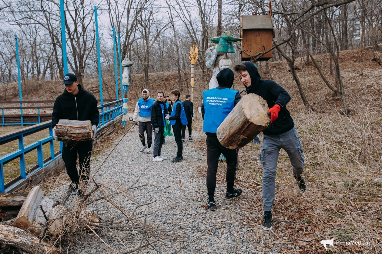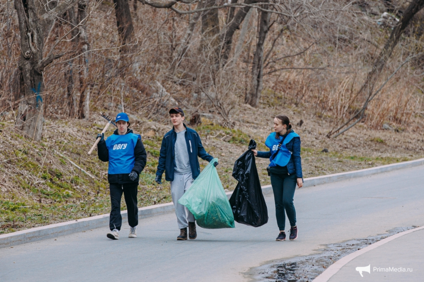 “Идея провести субботник была предложена администрацией ВВГУ, они хотели привнести свой вклад в двухмесячник уборки территорий. Мы выбрали масштабную площадку, этот парк очень важен для города и уборка его территории необходима после затяжной зимы”, — рассказала один из организаторов, секретарь Приморского регионального отделения российского экологического общества Юлия Соболева.