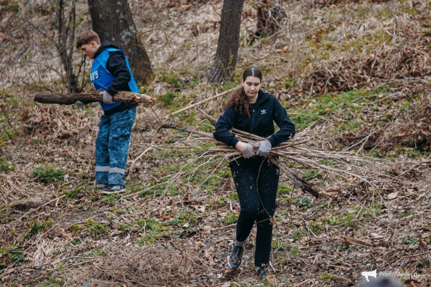 Чистый десант в парке Минного городка. Фото: ИА PrimaMedia