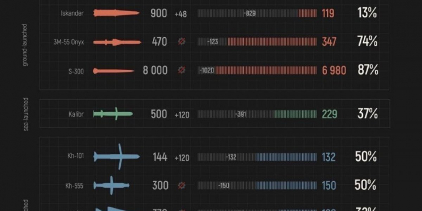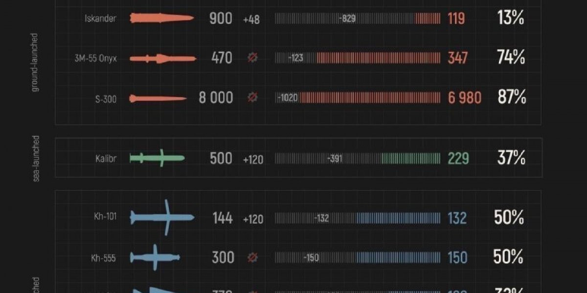 Украина, военная операция сегодня 23 ноября 2022: Минобороны Украины показали инфографику с данными, сколько ракет якобы осталось у России
