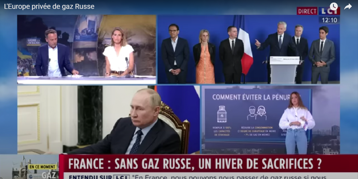 Катрин Жантиль (эксперт LCI): «Мы все помним слова Путина о том, что Россия по-настоящему ничего не начинала. Теперь мы понимаем, что имелся в виду не только военный аспект, но и экономический. И отключение газа и есть реальное начало. Цена на газ такова, что русские могут себе позволить продавать в два раза меньше газа, чем в прошлом году, а денег за него получить еще больше, чем годом ранее. Поэтому они сейчас в положении сильного. И Россия может сейчас прекратить поставлять газ и оказать сильнейшее давление на правительства западных стран.