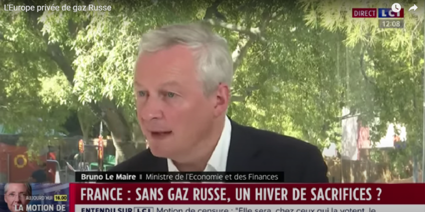 Во Франции доля российского газа всего 17 %, но с производством электроэнергии в этом году у Франции далеко не все гладко. Это мнение министра экономики Франции Брюно Ле Мэра, того самого, который по весне объявлял России тотальную экономическую войну и предвещал ее крах. В реальности же оказалось, что этот крах подкрался незаметно к самим ведущим европейским экономикам.