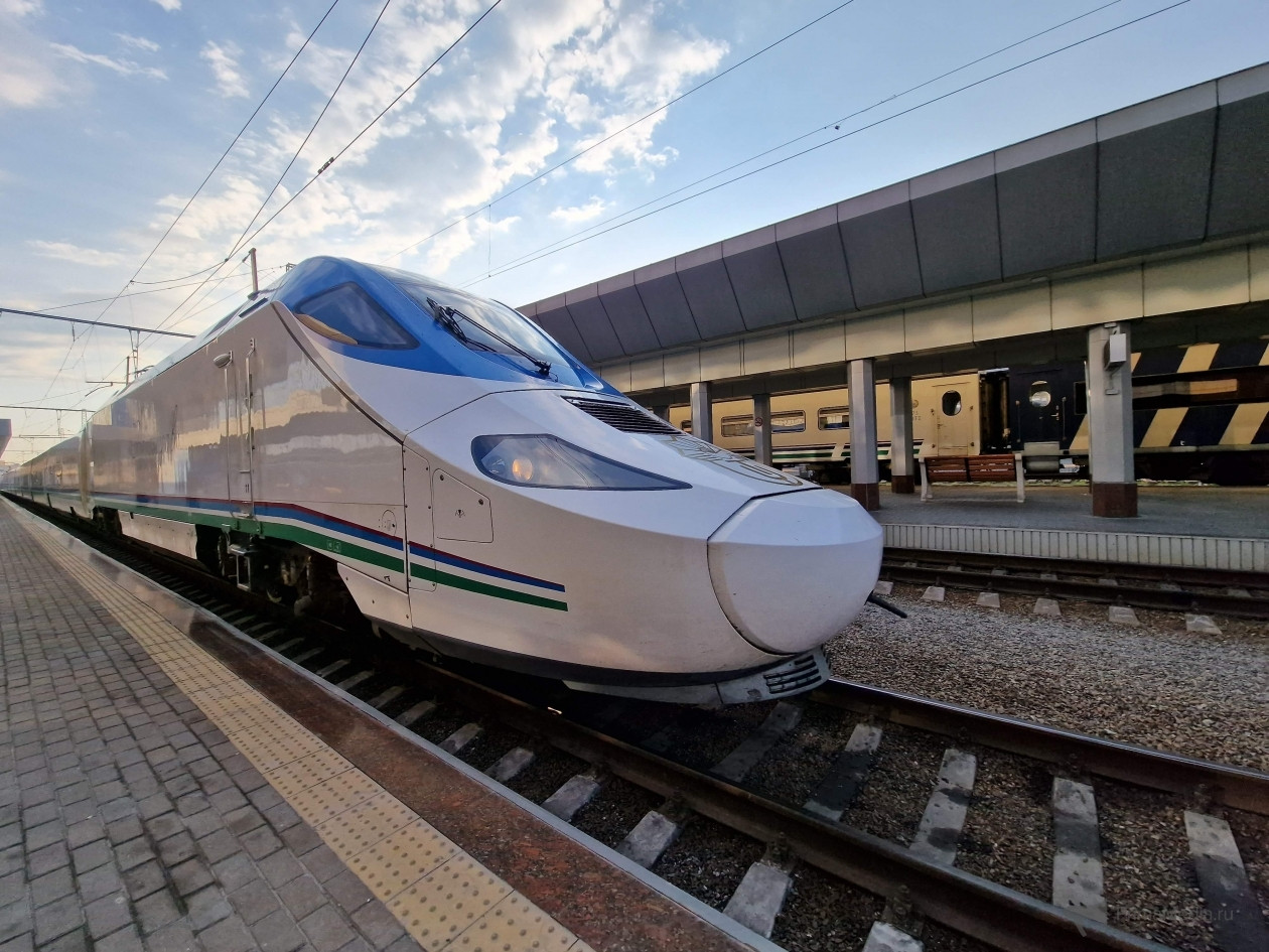 Мы покидаем столицу Узбекистана на скоростном поезде Afrosiyób (Афрасиаб), названного в честь древнего городища, расположенного в северной части современного Самарканда.