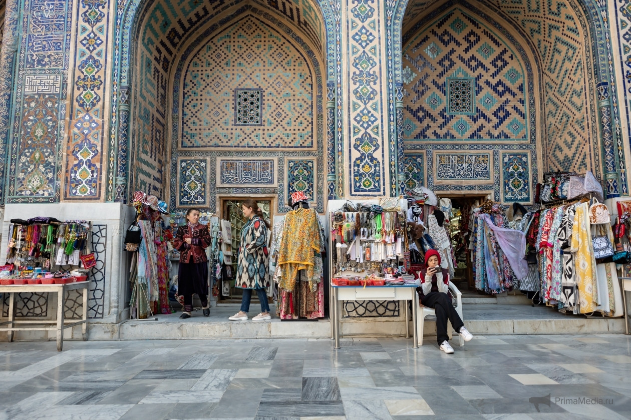 Во внутреннем дворе одного из медресе есть большая сувенирная ярмарка, а также замечательные виды для туристов и блогеров (особенно если подняться на второй этаж).