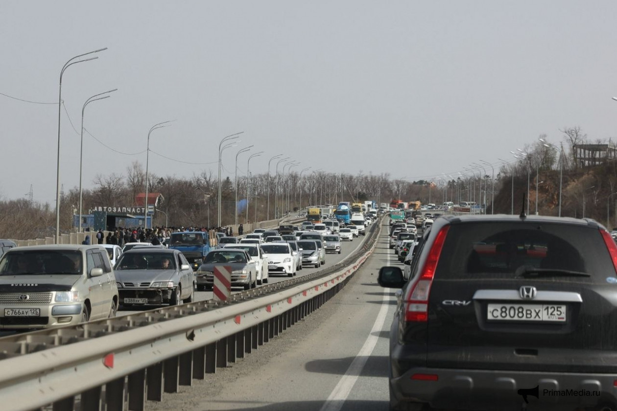 Дорожный коллапс в пригороде Владивостока. Фото: Илья Аверьянов, ИА PrimaMedia