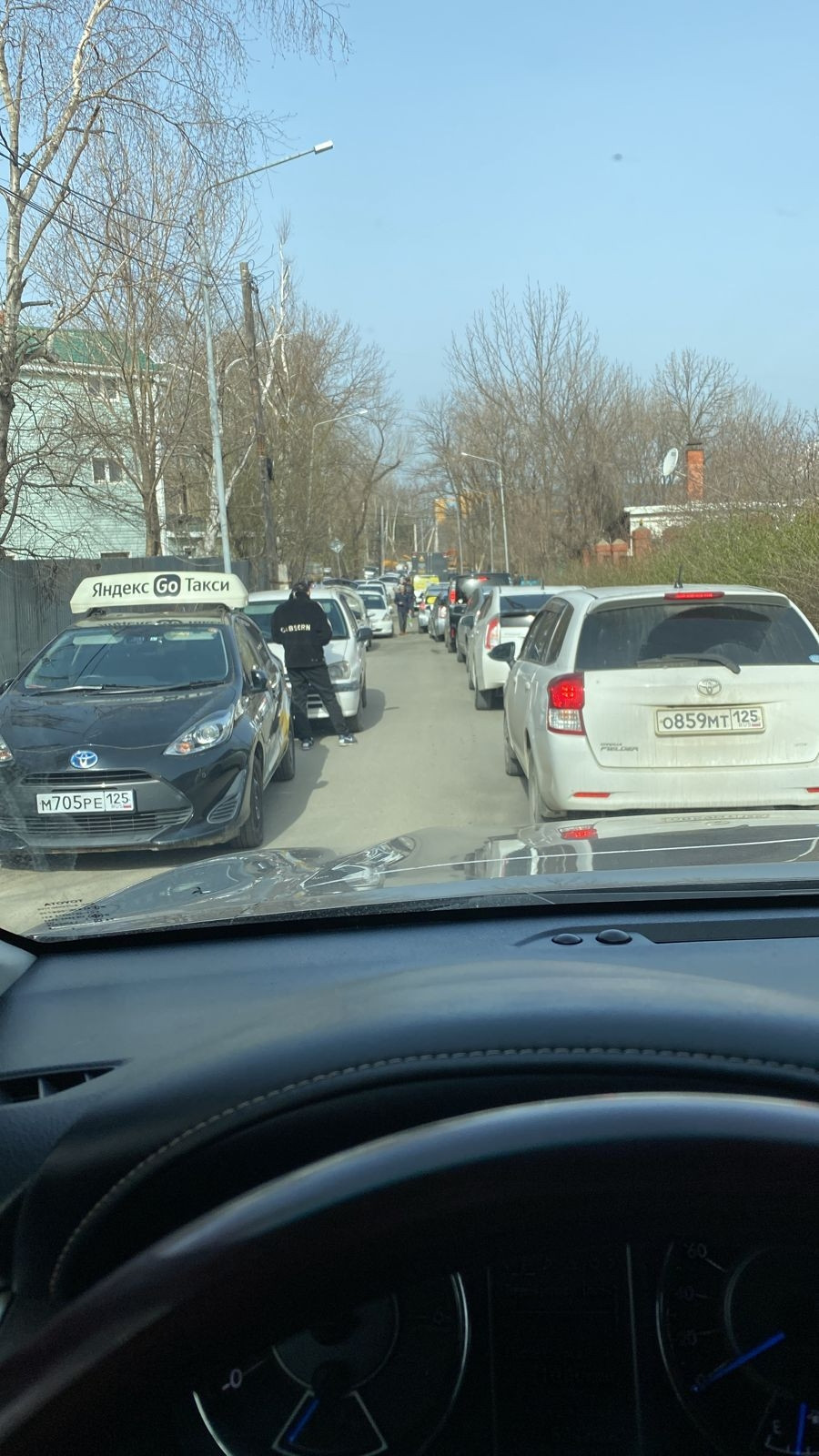 Как рассказывает Юлия, жительница улицы Таежная, в 8 часов 10 минут она выехала с дочерью в детский сад и на работу. Дорога к трассе идет довольно узкая, но обычно остается пустой. Сегодня же из-за припаркованных по обеим сторонам дороги машин проехать по ней было уже практически невозможно.
