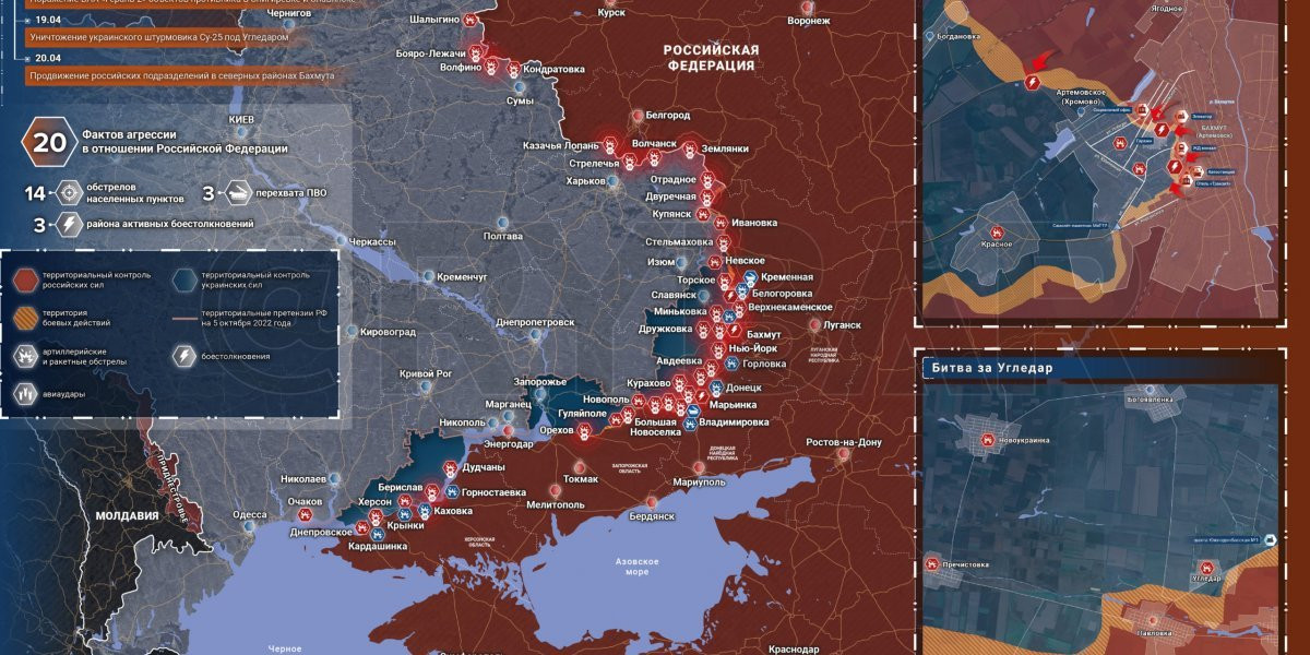 Боевые действия на Украине 21 апреля 2023: новая карта боевых действий на Украине 21.04.2023. Новая карта Украины