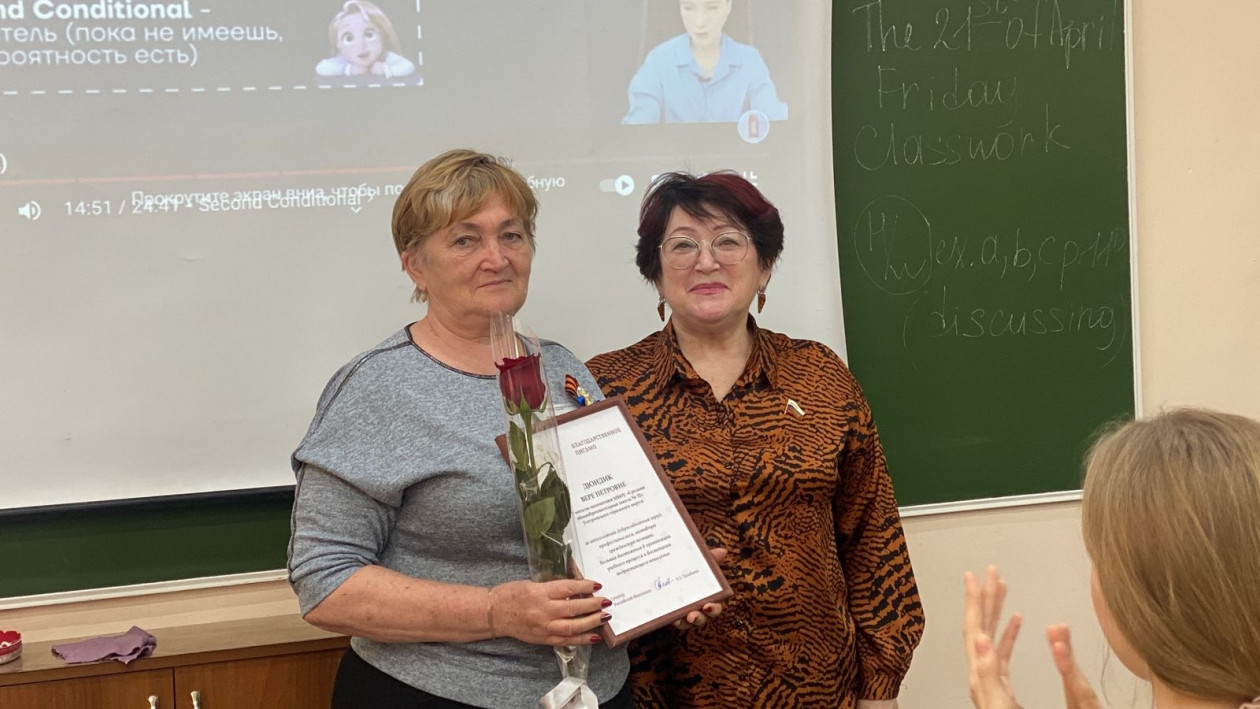 Людмила Талабаева наградила благодарственными письмами ряд педагогов школы. Фото: ИА PrimaMedia