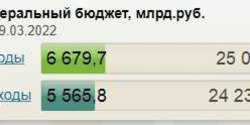 И профицит не копеечный. Согласно оперативным данным системы «Электронный бюджет», по состоянию на 29 марта 2022 года профицит федерального бюджета России составил чуть больше 1,1 трлн. рублей: