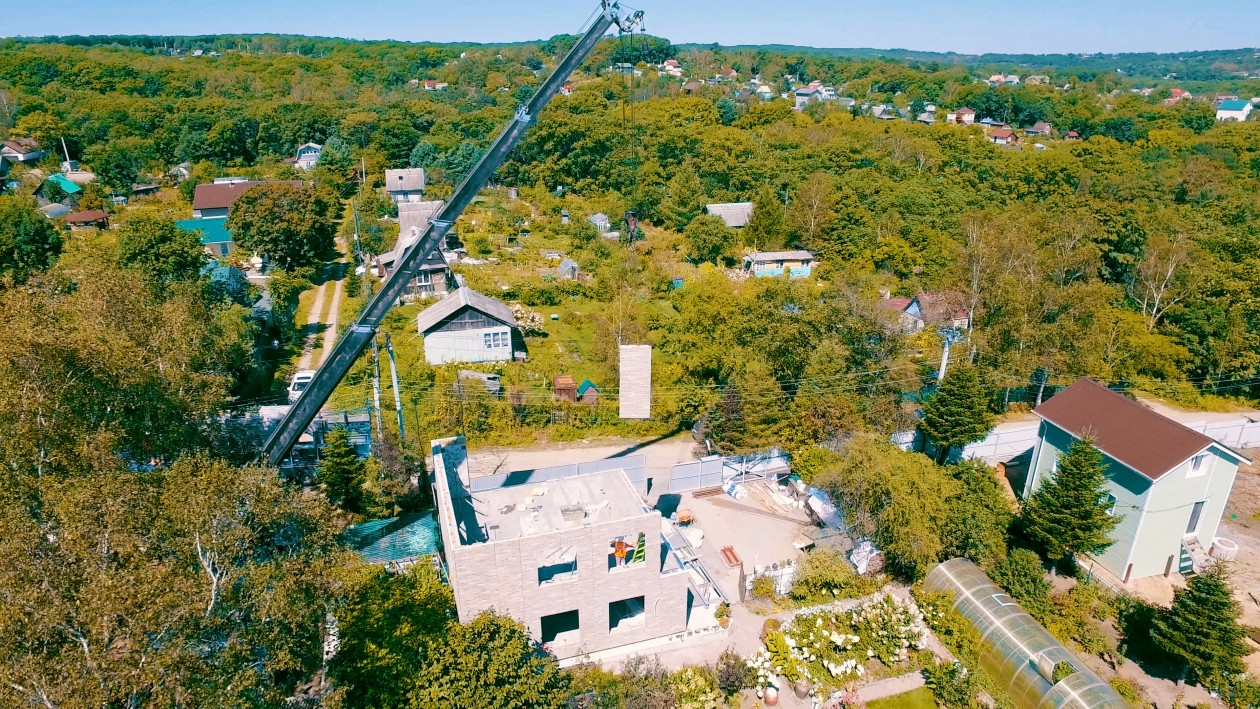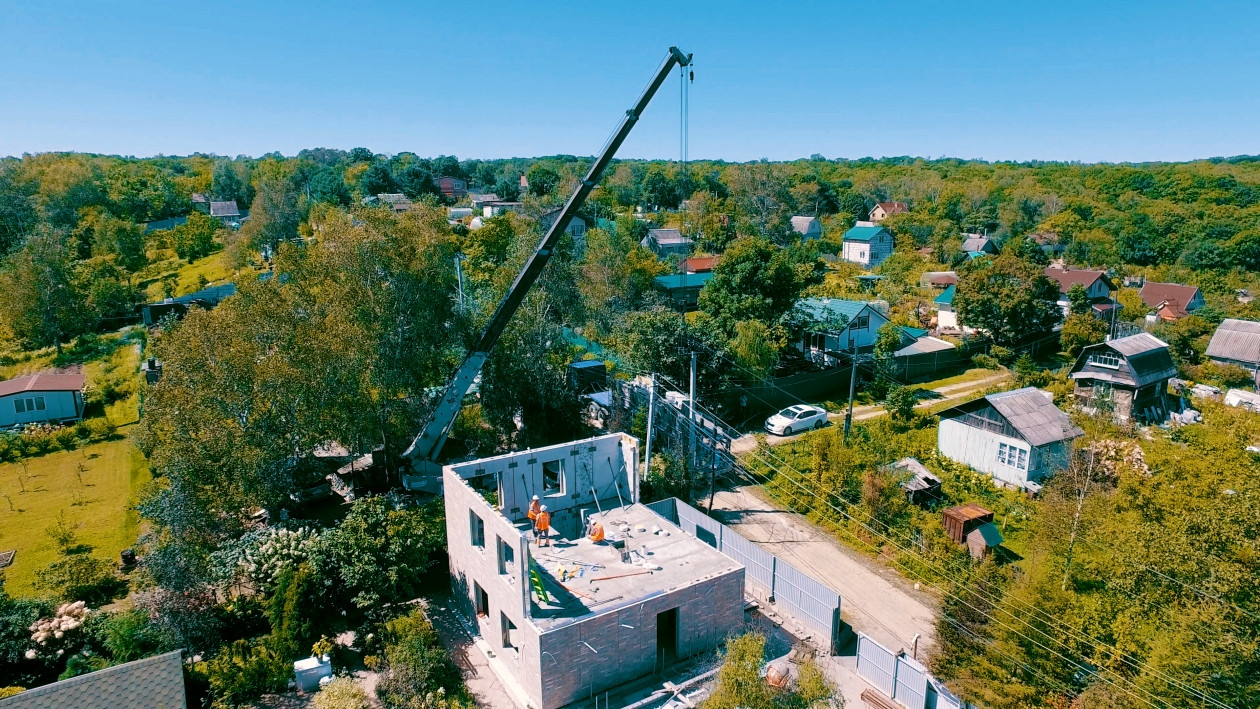 Монтаж домокомплектов для ИЖС от ДСК "Приморье". Фото: пресс-служба ГК "DNS Девелопмент"