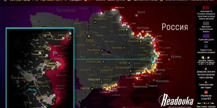 С потерей каждого из районов Артёмовска (Бахмута) в украинских медиа со ссылкой на военных всё активнее звучат слова о том, что «фортеция Бахмут» выполнила свою работу и что, оказывается, у российских войск не было планов взять город. Украинские военные в сети делятся друг с другом и своими подписчиками соображениями о том, что задачей российских сил было «выдавливание ВСУ в западном направлении».