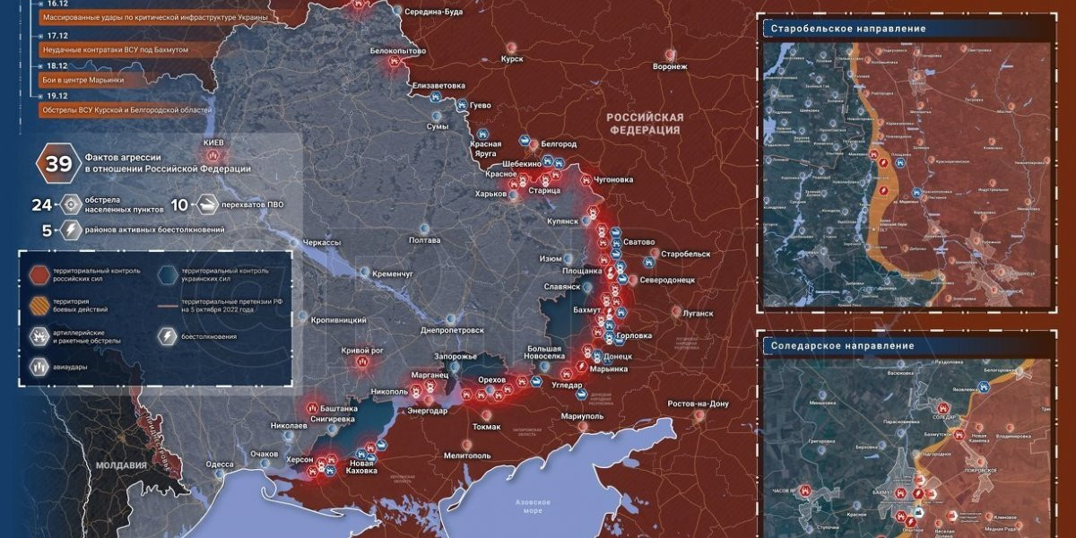 - Свежая карта боевых действий на Украине на сегодня 20.12.2022. Спецоперация РФ на Украине, день 300-й