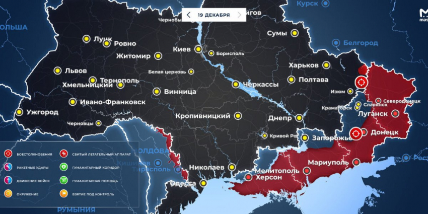 Обстановка на Донбассе и Украине на сегодняшний день, 20 декабря, карта боевых действий и продвижения войск РФ, последний брифинг Минобороны, свежие видео-сводки от Юрия Подоляки, Игоря Конашенкова и Михаила Онуфриенко — собрали актуальные новости по Украине.