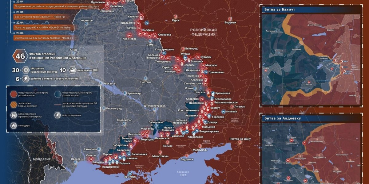 - Свежая карта боевых действий на Украине на сегодня 27.04.2023. Спецоперация РФ на Украине, день 428-й