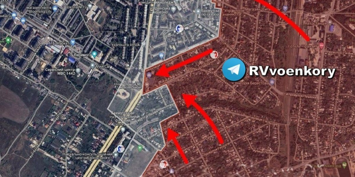 - В районе центра (на самом деле уже на западе) и на севере города «вагнеровцы» продвинулись по улице Леваневского, Соборной, Леси Украинки и в районе мясокомбината по той же улице Чайковского.