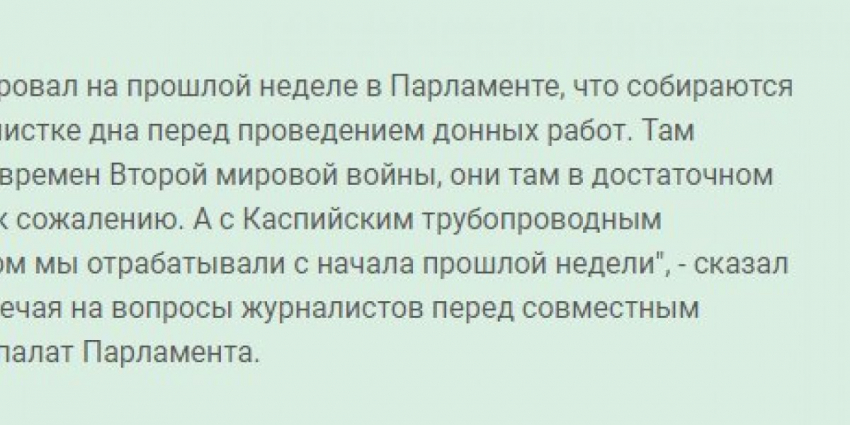 - Ответ России на недавние высказывания нашего президента, нужен новый трубопровод из Атырау в Баку и дальше в Турцию.