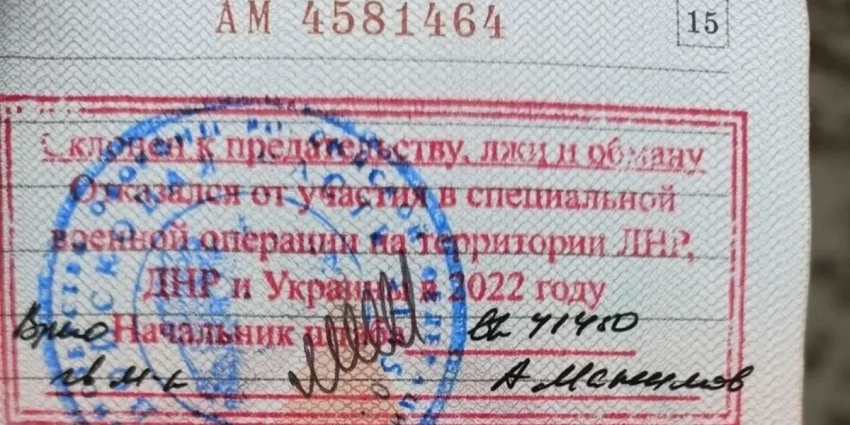 Бывший военнослужащий получил в военном билете печать, согласно которой является склонным к предательству человеком из-за отказа от отправки на Украину.