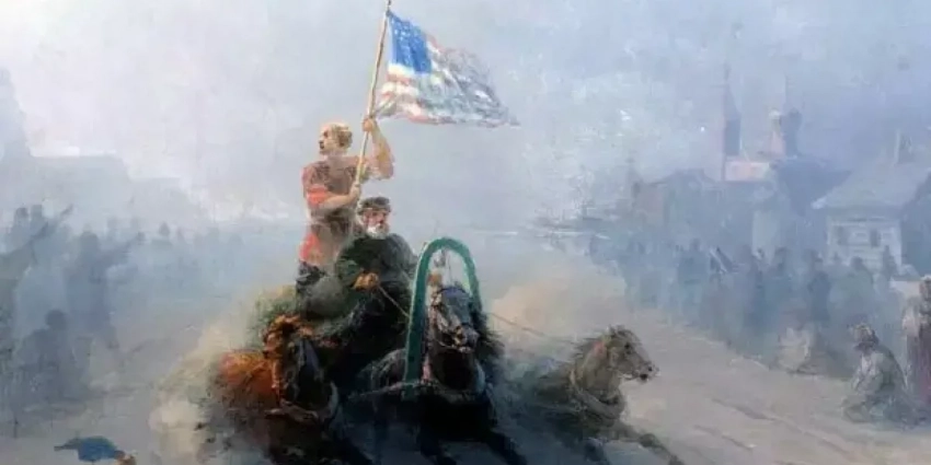 Почему русская женщина едет в тройке с флагом США на картине Айвазовского