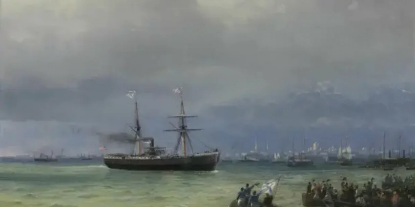 Примечательно, что Айвазовский написал ещё одно полотно по мотивам событий того времени. На картине «Корабль помощи» живописец запечатлел флотилию США, подходящую к берегам Прибалтики.
