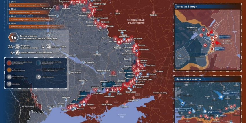 - Свежая карта боевых действий на Украине на сегодня 01.05.2023. Спецоперация РФ на Украине, день 432-й