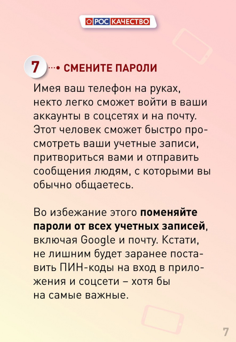 После этого можно заняться сменой всех паролей, которые были занесены в память телефона.