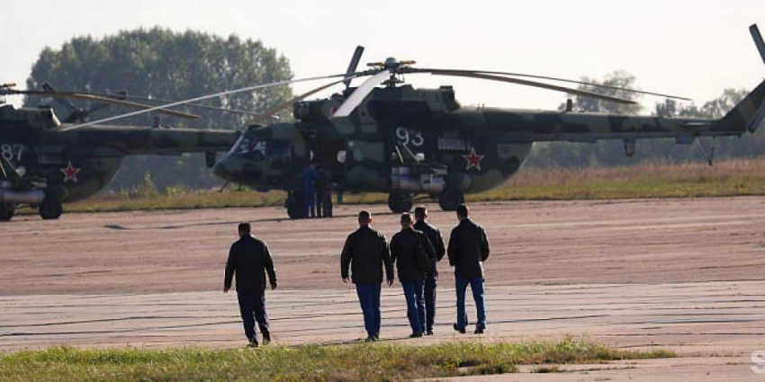 Российские ударные вертолеты в действии во время крупномасштабных учений «Запад-2021», в которых приняли участие 200 000 военнослужащих и которые должны были продемонстрировать боеготовность российской армии на Западе и в соседней Украине.